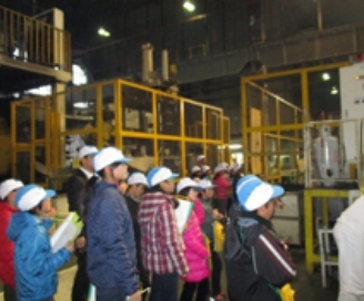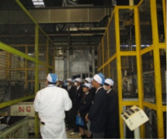 安全に配慮し、鋳造⇒加工及び品質保証工程等、製品ができるまでのものづくりを見学。